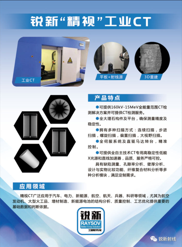精視CT廣泛應(yīng)用于汽車、電力、新能源、航空、航天、兵器、科研等領(lǐng)域,尤其為航空發(fā)動(dòng)機(jī)、大型火工品、增材制造、新能源電池等的結(jié)構(gòu)分析、質(zhì)量控制、工藝優(yōu)化提供重要的基礎(chǔ)數(shù)據(jù)和判斷依據(jù)。