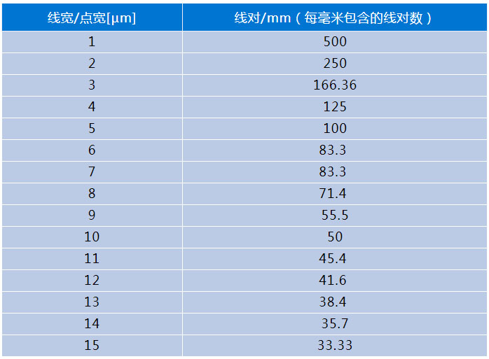 芯片上的線寬/點(diǎn)寬與線對(duì)數(shù)量的對(duì)應(yīng)