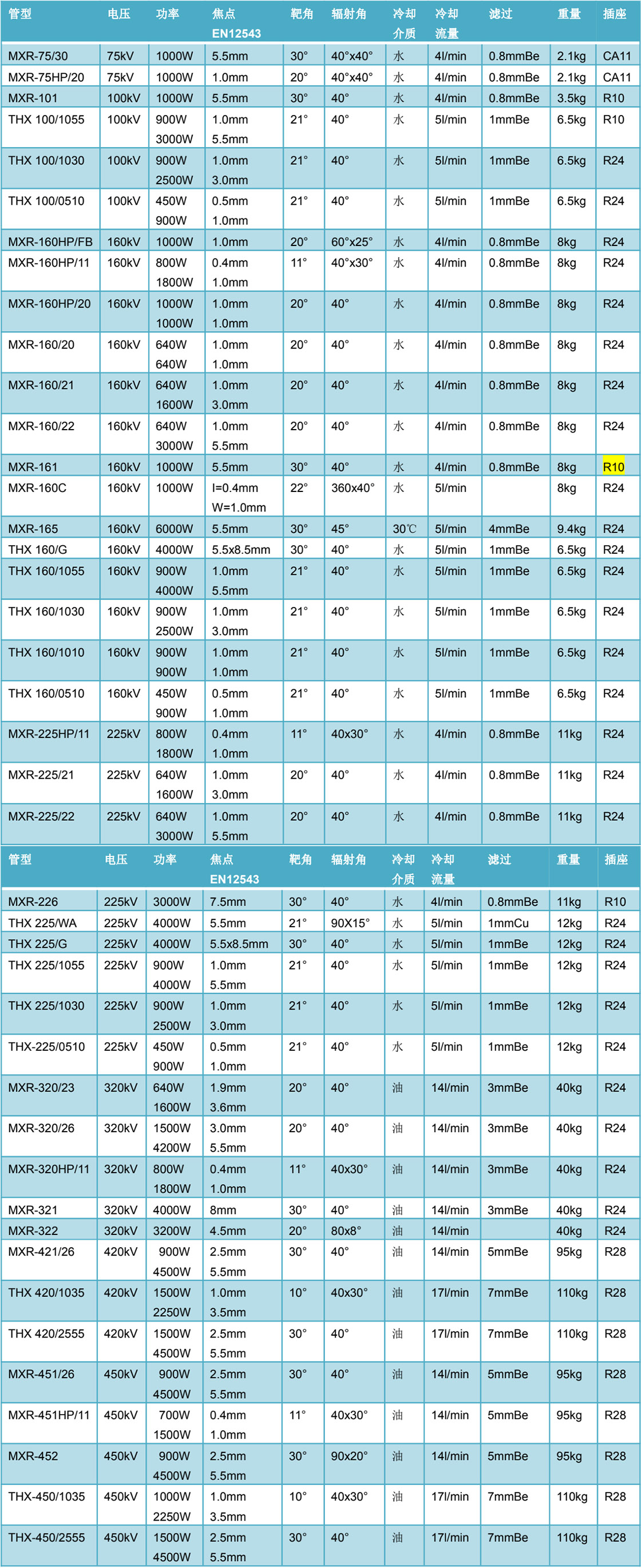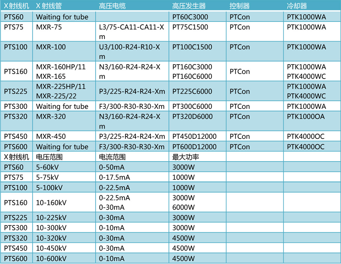 本表所有型號(hào) X 射線管操作程序已嵌入 PTCon 控制器,使用時(shí)可選擇對(duì)應(yīng)管型。