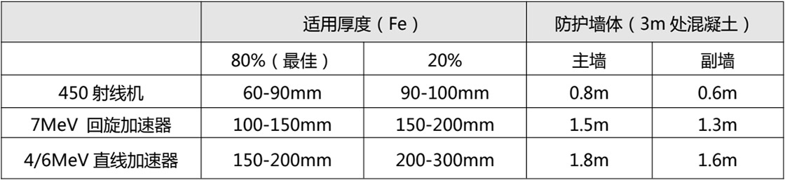 設(shè)備體積小、重量輕,為直線加速器的 1/4,輻射器重量僅 100kg,位置擺放便捷,透照較大工件,運動靈活。由于不需要直線加速器所配置的行車和軛架,雖然防護墻厚度與直線加速器基本相等(1.5m.,防護室的高度、面積可大大縮小,防護室建設(shè)成本為直線加速器的 50%。調(diào)制器部分以風(fēng)冷替代水冷,降低故障環(huán)節(jié),受環(huán)境影響較小。